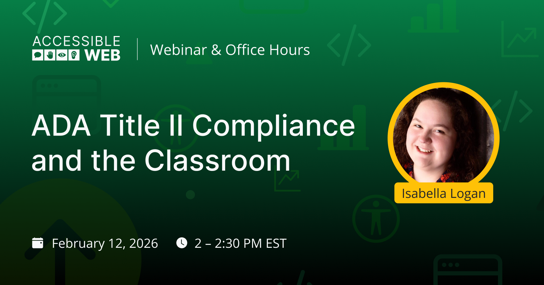 This education-focused webinar is designed to help K–12, higher education professionals, and educational software teams understand what ADA Title II means for the classroom and how to begin building more accessible learning experiences.