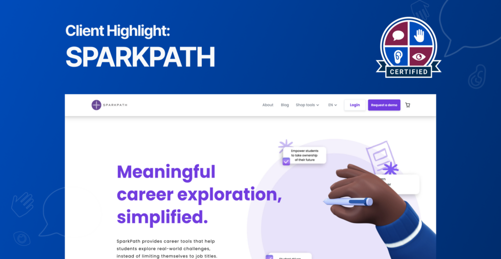 We congratulate our amazing client, Sparkpath, on achieving WCAG 2.1 AA conformance on their application! Their physical and digital tools let students take control of their future by allowing them to explore their passions in meaningful ways. They give students confidence, knowledge, and access to career exploration.
