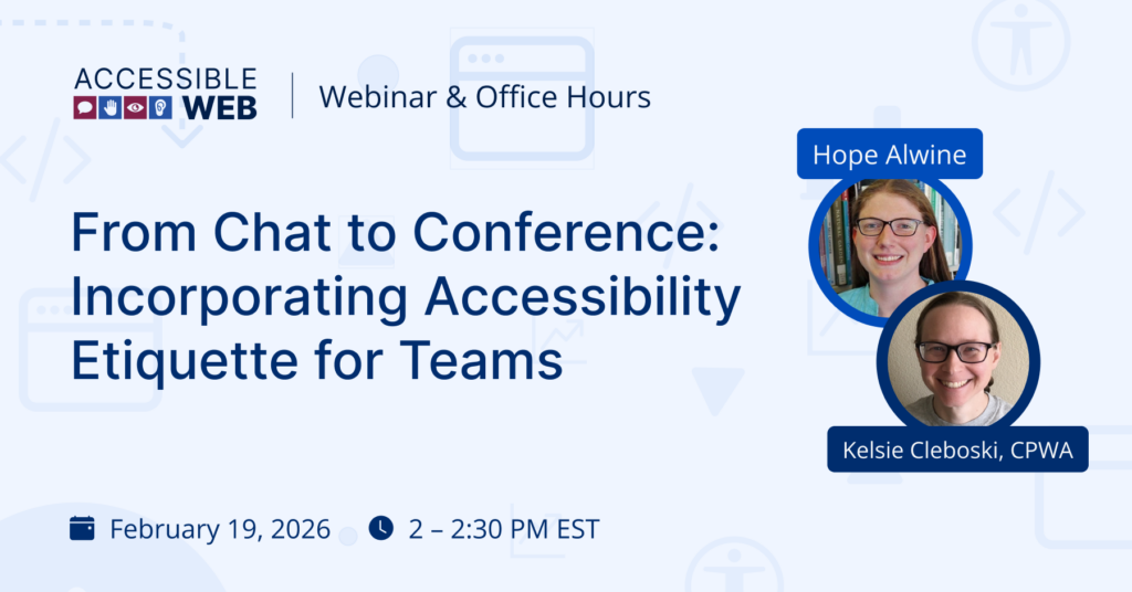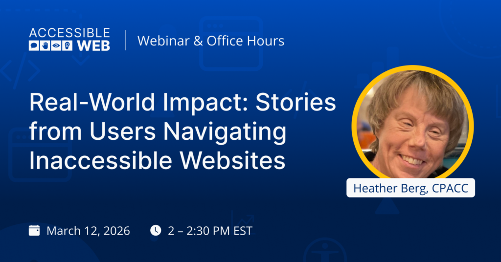 - Accessibility ROI: The Business Case for Inclusive Web Design | Upcoming WebinarFebruary 26 | 2 PM EST